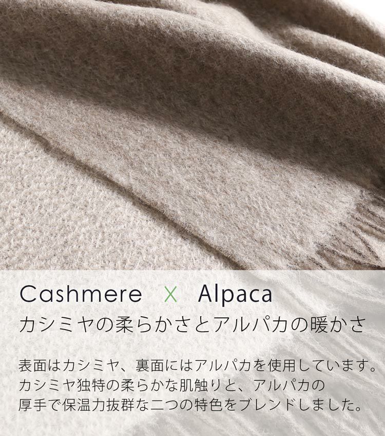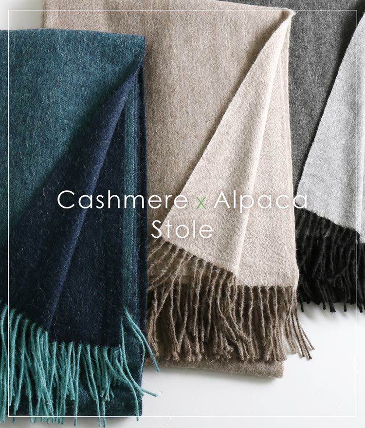 カシミヤの柔らかな肌触りと、アルパカの暖かさを同時に体感できる、贅沢な大判ストール。