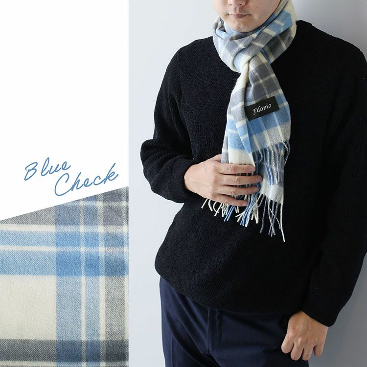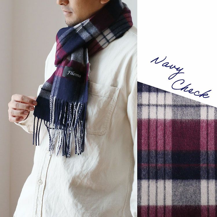 マフラー メンズ カシミヤ ブレンド チェック 無地 【ネコポスで送料無料】 【名入れ刺繍対象】 Filomo 7F (02000323-mens-1r) 【名入れ刺繍可能】