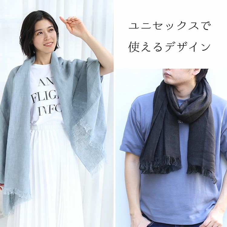 天然素材のリネンを使用した、シンプルで使いやすい大判ストールです。
