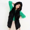 前身ごろとフードの表側にラビットファーを使用したフード付きのベストです。 ニットと組み合わせることでラグジュアリーになりすぎず、普段の装いに合わせやすいデザインです。 柔らかくてふわふわの手触りと抜群の暖かさは毛皮ならでは。 カジュアルな雰囲気に仕上げたのであらゆるコーデに合わせやすく、気軽に着用できます。 おしりが隠れる長めの着丈で、冷えやすい腰周りもしっかり暖めます。 前面はラビットファー、背面にはニットを使用しています。 ファーを使ったフードが付いているので後姿も可愛らしい印象です。 大きめのフードにもラビットファーをたっぷり使用。 ボリュームのあるフードが華やかで可愛らしく、 顔を小さく見せてくれます。