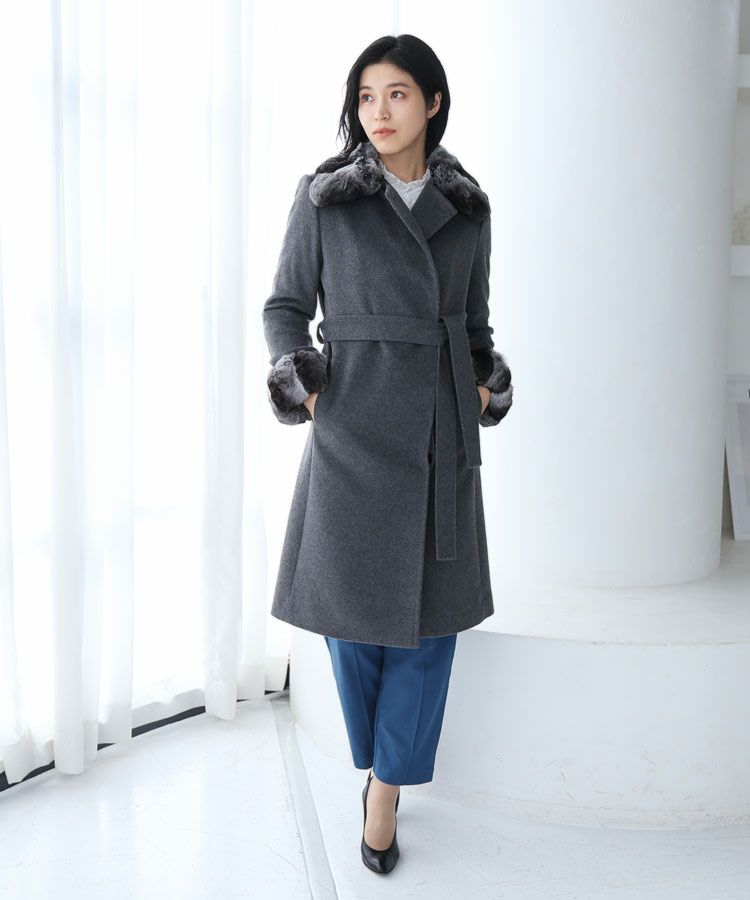 カシミヤ コート チンチラ レディース コート ギフト 6F (02000316r)
