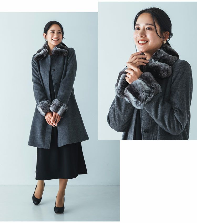 カシミヤ100% チンチラトリムコート レディース Filomo filomo カシミヤ コート ステンカラーコート 冬 カシミヤコート ステンカラー ブランド 上品 冠婚葬祭 フォーマル アウター ミドル丈 着丈90cm ギフト 6F (02000324r)
