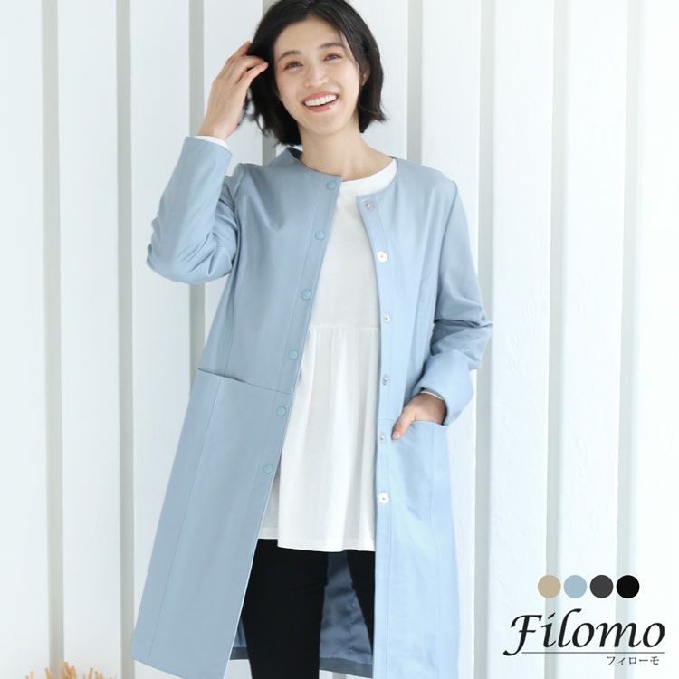 レザー コート アウター レディース ラムレザー 本革 ノーカラー ロングコート ブランド Filomo 女性 上品 軽量 暖かい シンプル 春 秋 冬 おしゃれ 大人 母 ギフト 羊革 ノーカラーコート
