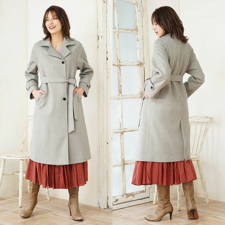 | 商品名:Filomo ウールタッチ チェスターコート ベルト付き ロング丈 レディース |
