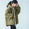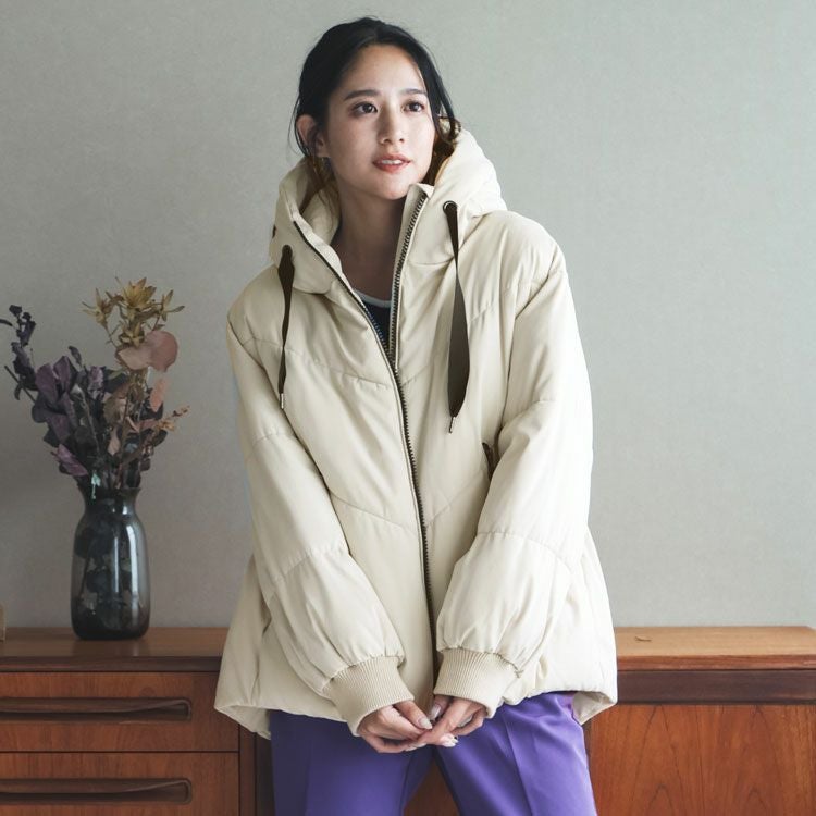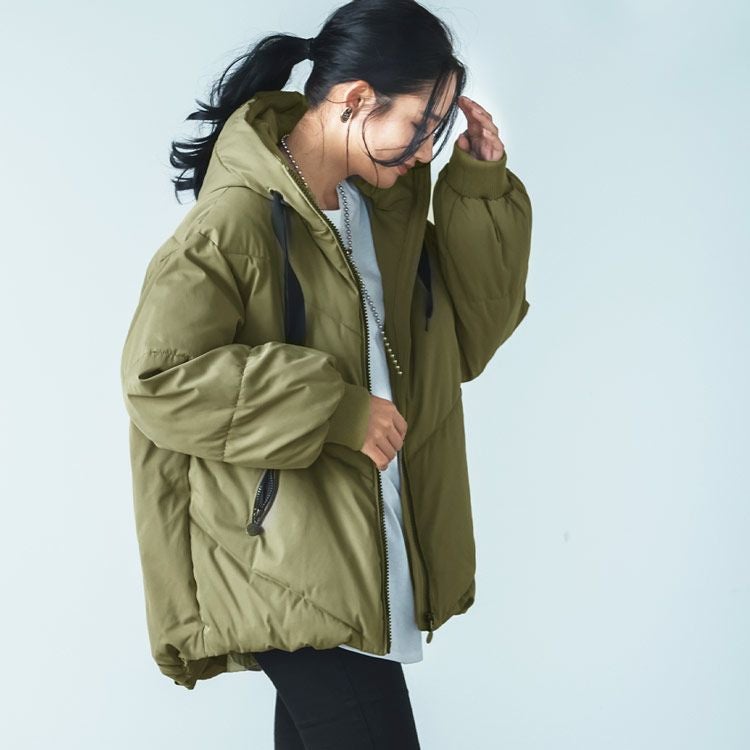 オーバーサイズでゆったりとしたシルエットの中綿コート。
