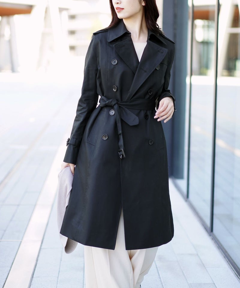 | 商品名:Filomo トレンチコート レディース ロング コットン100% キルティングライナー 付き ベージュ/ブラック 黒 7号-15号 |