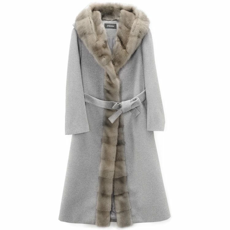 他の画像を見る Filomo 39%OFFクーポンSALE Filomo ミンク トリミング ロング コート カシミヤ ブレンド ウール レディース フード 付き 着丈120cm 7F ¥ 198,000 税込 (0件) お気に入りに登録する
