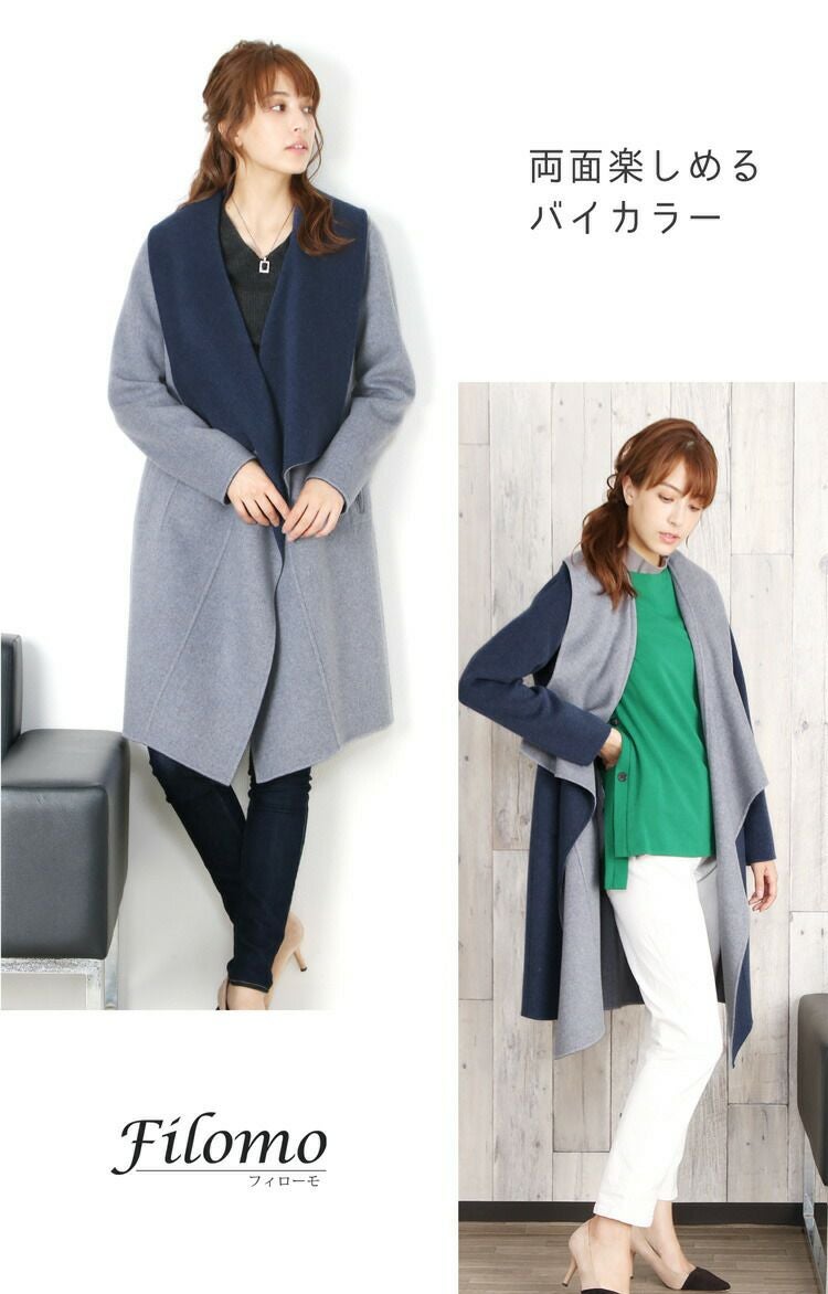 他の画像を見る Filomo 冬物限定10%OFFクーポン Filomo カシミヤ ブレンド ウール ラップ コート リバーシブル バイカラー ダブルフェイス レディース 7F ¥ 52,800 税込 (0件) お気に入りに登録する