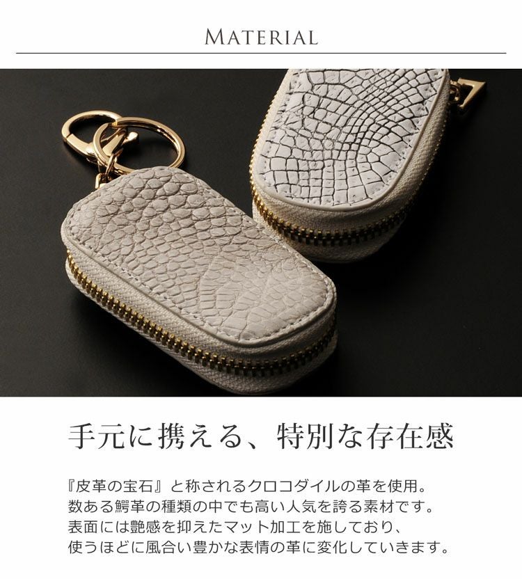 天然皮革 エキゾチックレザー クロコダイル スマートキーケース マット加工/ヘンローン社製原皮使用/メンズ キーホルダー ワニ革 マットクロコダイル 白 革小物 レザー 紳士 プレゼント ギフト