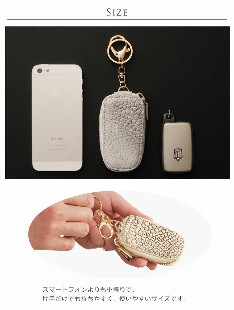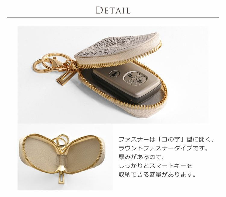 ラウンドファスナーで開閉し、スマートキーを収納できます。