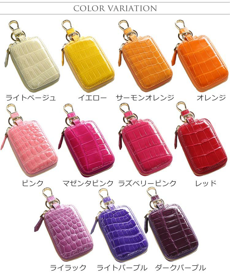 2. クロコダイル スマートキーケース シャイニング 加工 ゴールド 金具 レディース ICカードホルダー付き 全11色 4FA