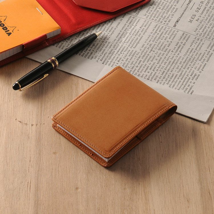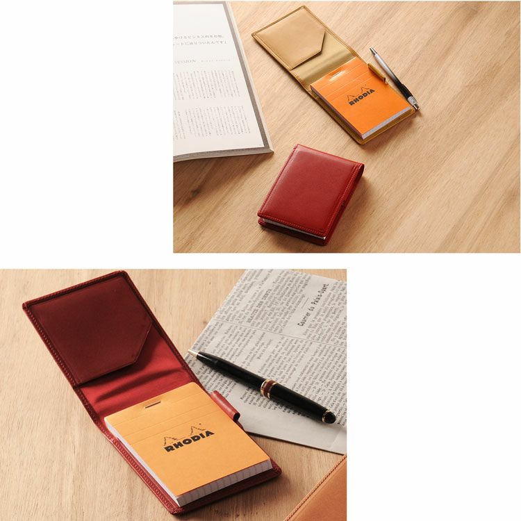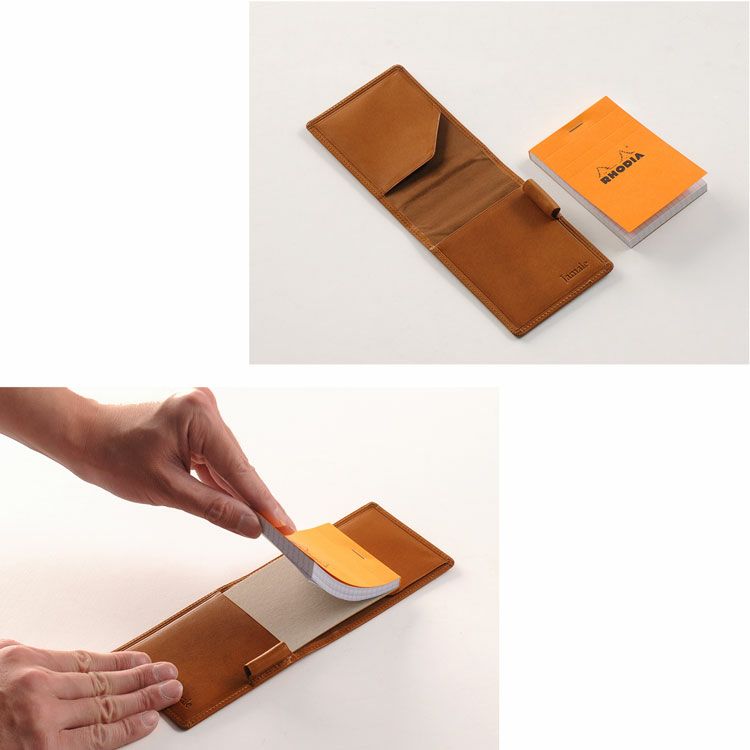 No.11のRHODIA(A7サイズ)専用の メモ帳カバーです。 科学者やアーティスト、 建築家やデザイナーなどに愛用される 105x74mmのロディアが付属しています。 栃木レザーは、北米の広大な牧場で 大きく元気に育った牛の原皮を使用しています。 栃木のタンナーの元で、大きく分けても 20にも及ぶ伝統的な技法工程を経ることにより、 日本で最高峰と呼ばれる 「ヌメ革」に仕上がっています。 しっとりと手に吸い付き馴染むような ソフトな肌触りと、本革ならではの 味のある表情・光沢感が魅力の日本製レザーです。 No.11のロディア(A7サイズ) 専用のメモ帳カバーです。 フラップの裏側にメモ帳や カードなどを挟めるポケット付きです。 ロディアの右横にペンを差す ホルダーが付いています。 メモ帳は差し込むだけで 簡単に装着できます。 重量:約40g