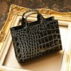 ブラックカラーをベースに様々な加工を施した、クロコダイルトートバッグ。