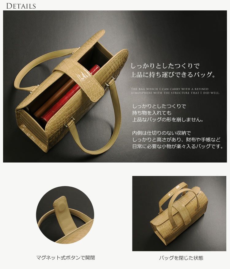天然皮革 エキゾチックレザー 日本製 クロコダイル ハンドバッグ シャイニング 加工/レディース/軽量/ バック 鞄 クロコダイル バッグ 女性用 本革 本皮 ワニ革 安心 保証書 付き 母 女性 プレゼント ギフト ladiesbag