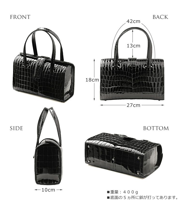 クロコダイル ハンドバッグ シャイニング 加工 日本製 『クロコダイル保証書付き』 4FA