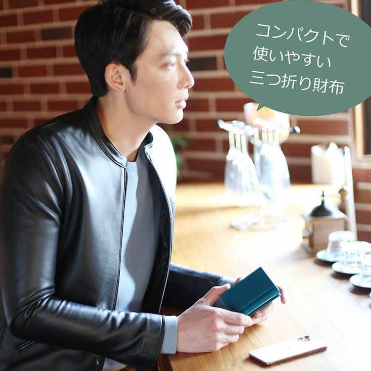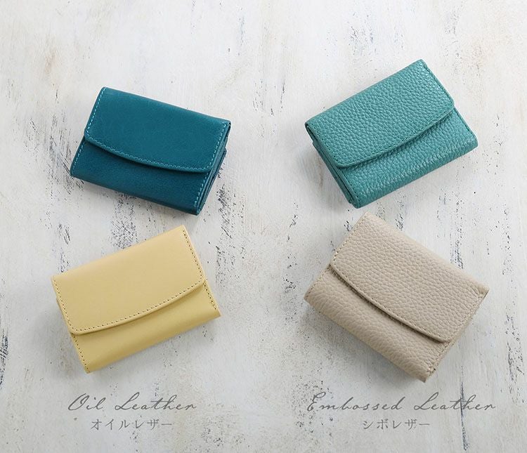 片手にすっぽりと収まる三つ折りコンパクト財布。