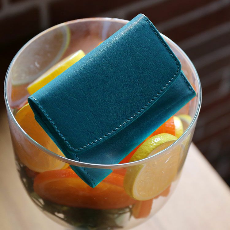 大きく開いて使いやすいボックス型小銭入れや紙幣入れなど、小さくても機能的なお財布です。
