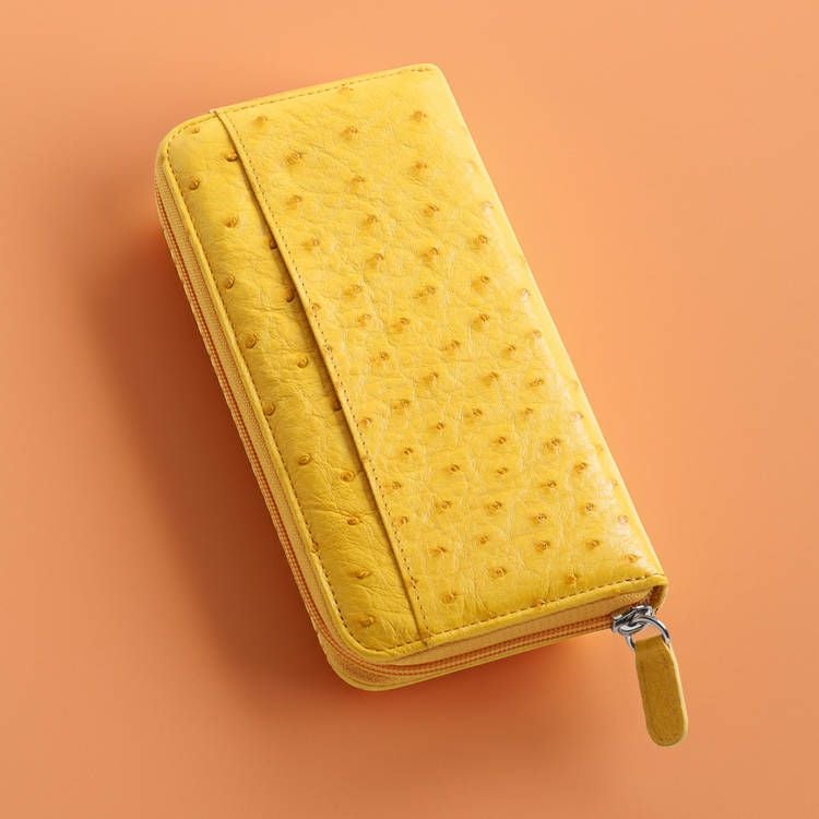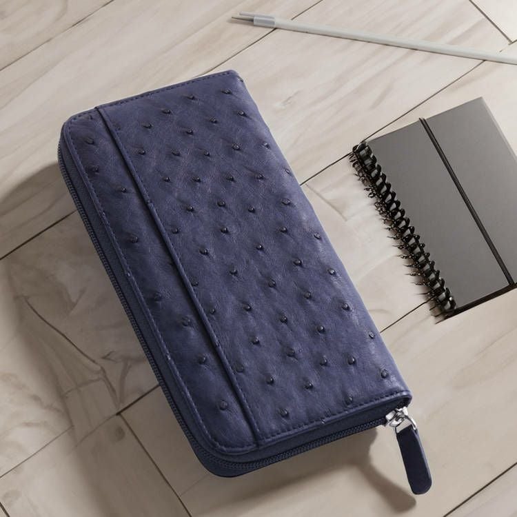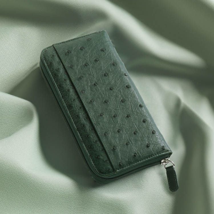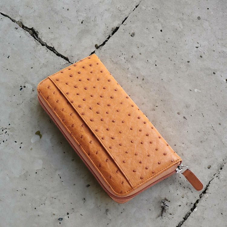 クイルマークが美しく並ぶオーストリッチを使用した、ラウンドファスナー式の長財布。