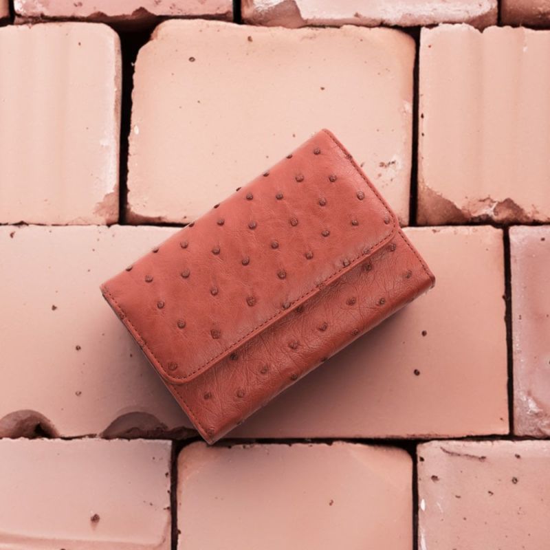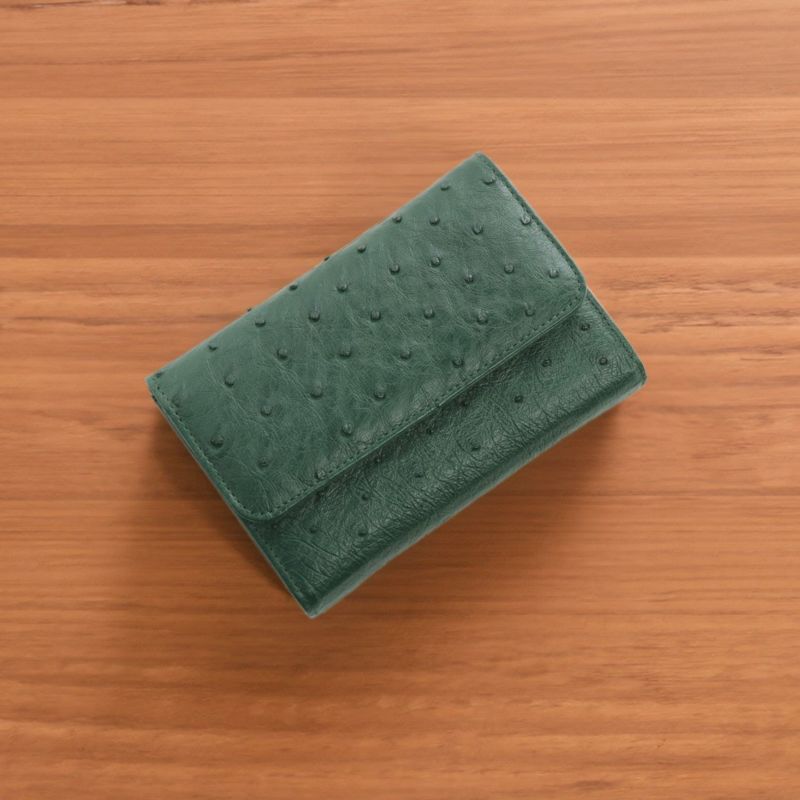軽くてしなやかな質感のオーストリッチを使用したコンパクトな三つ折り財布。