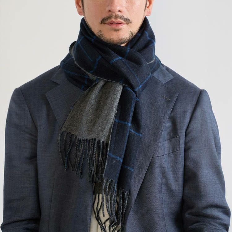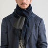 カシミヤ100%を使用したチェックと無地のリバーシブルマフラー。
