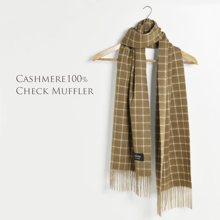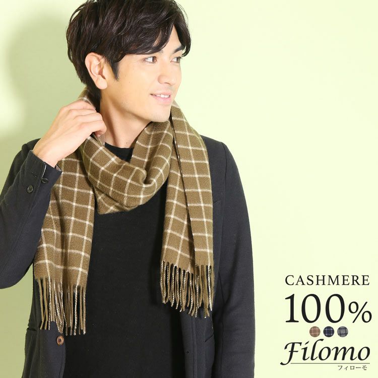 ※名入れ刺繍をご希望の方は、別途有料の名入れ刺繍を同じ買い物カゴでご購入ください Filomo カシミヤ 100% マフラー ウインドゥペン チェック フリンジ デザイン メンズ 【ネコポスで送料無料】 7F 【名入れ刺繍可能】