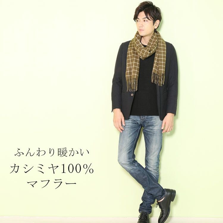 カシミヤ 100% マフラー ウィンドウペン チェック柄 カラー グレー ネイビー キャメル