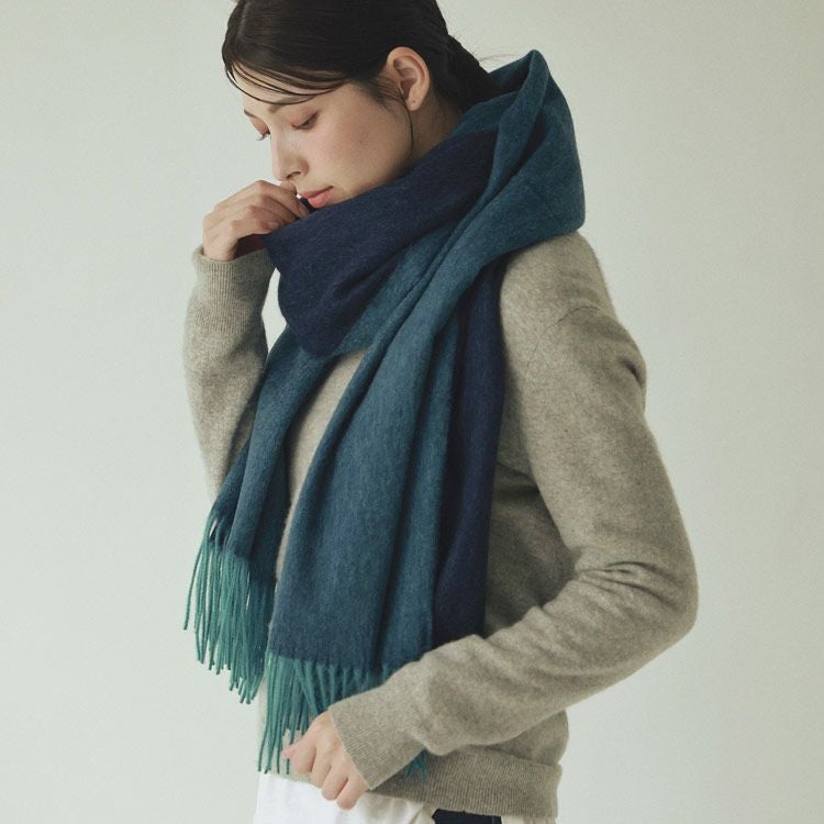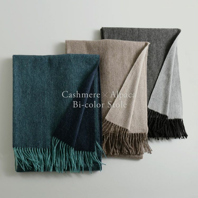 カシミヤの柔らかな肌触りと、アルパカの暖かさを同時に体感できる、贅沢な大判ストール。