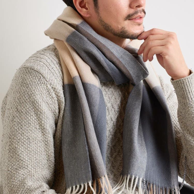 ふっくら 柔らかな カシミヤ ブレンド マフラー メンズ