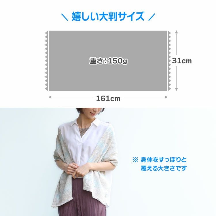 大判サイズで、首元から肩まで広くカバーできるので、日焼け対策もばっちり。