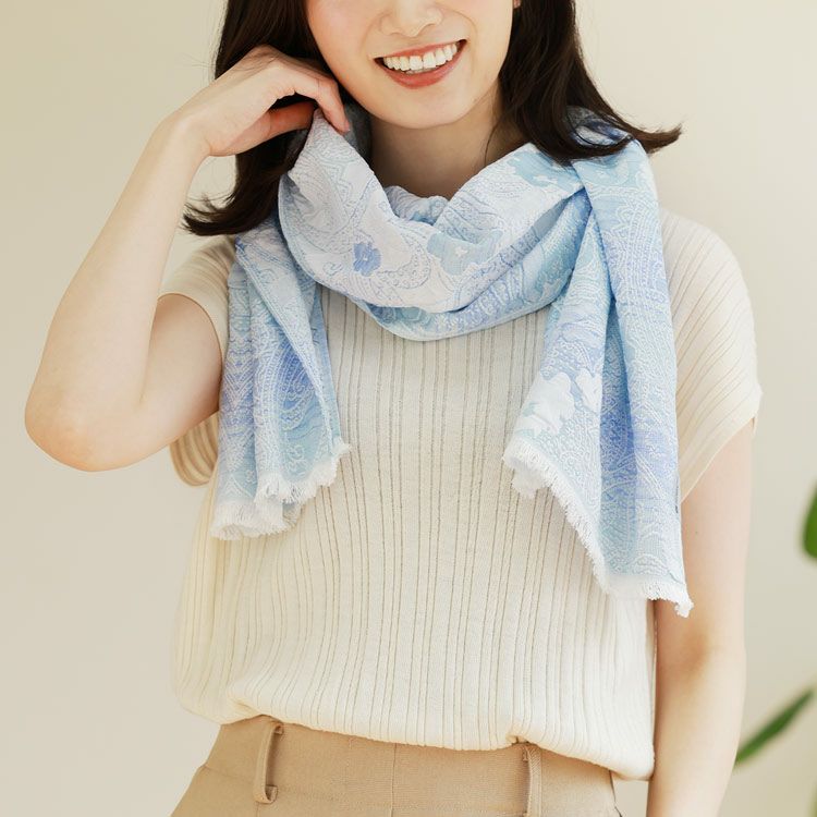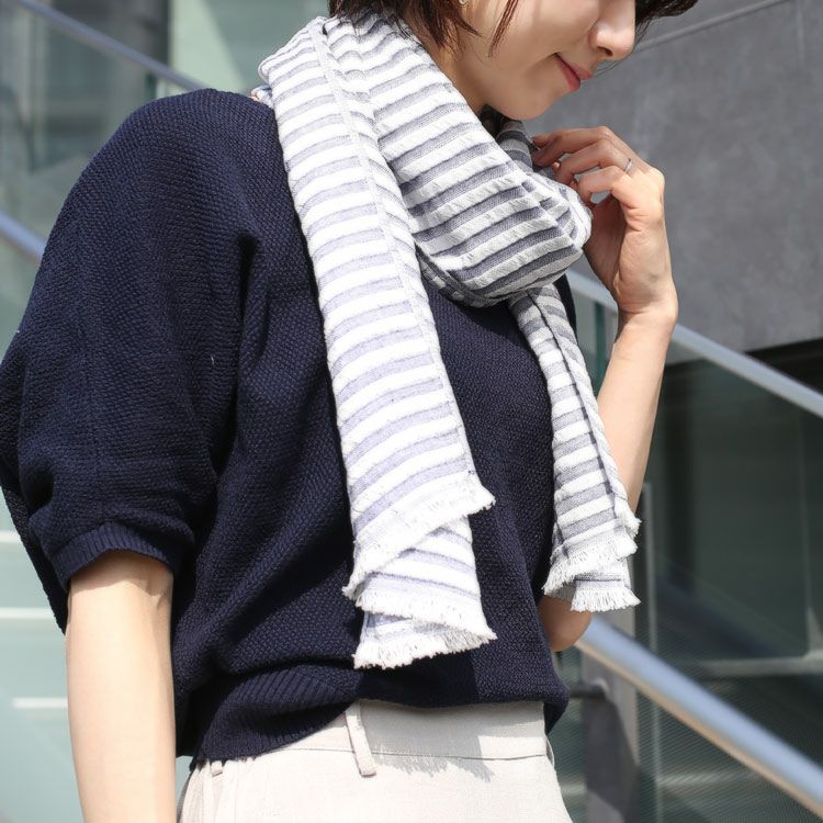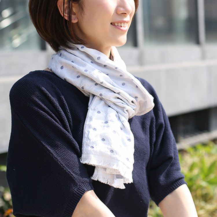 **接触冷感クール糸(R)**を使用した冷感ストールで、外出先でも涼しく快適。