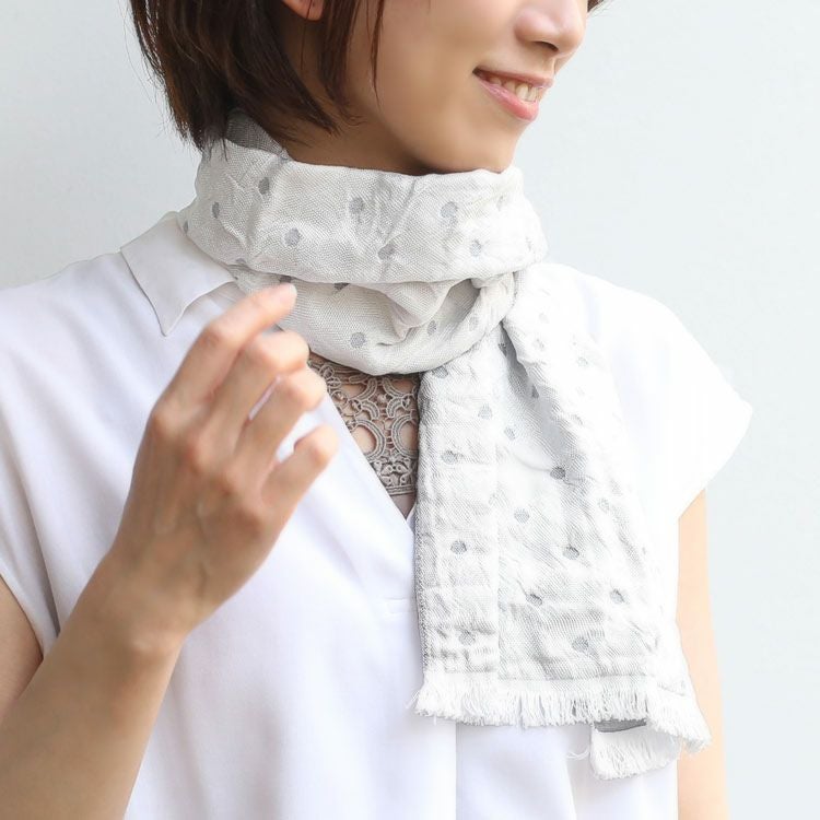 **接触冷感クール糸(R)**を使用した冷感マフラーで、外出先でも涼しく快適。
