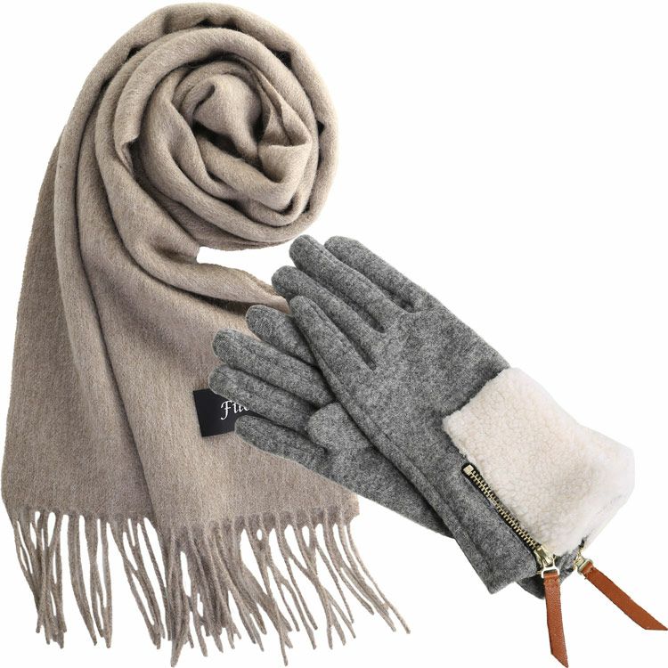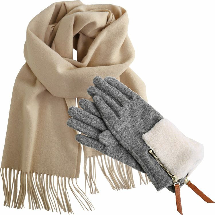 カシミヤブレンドマフラー&手袋 ギフトセット レディース 女性向け 【名入れ刺繍対象】(gset-02000323lr)