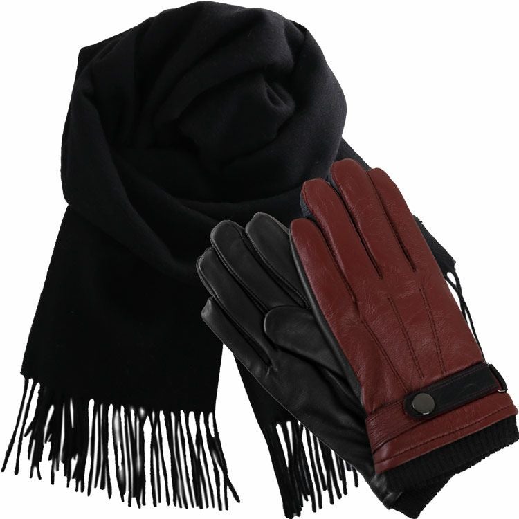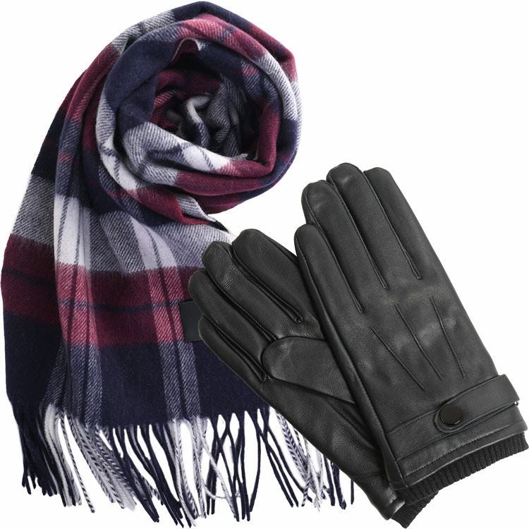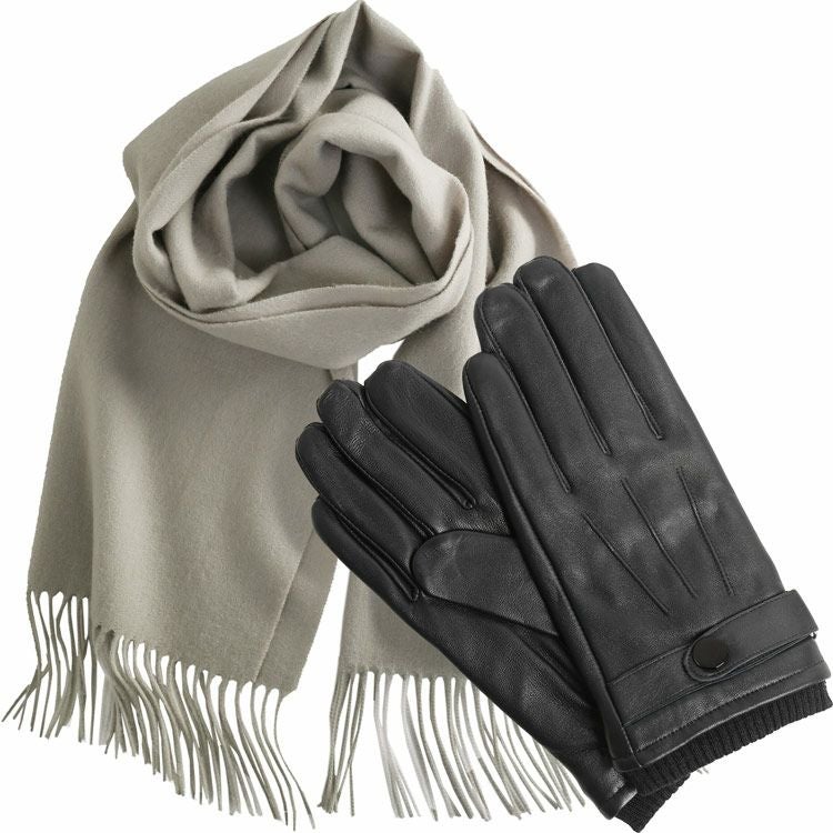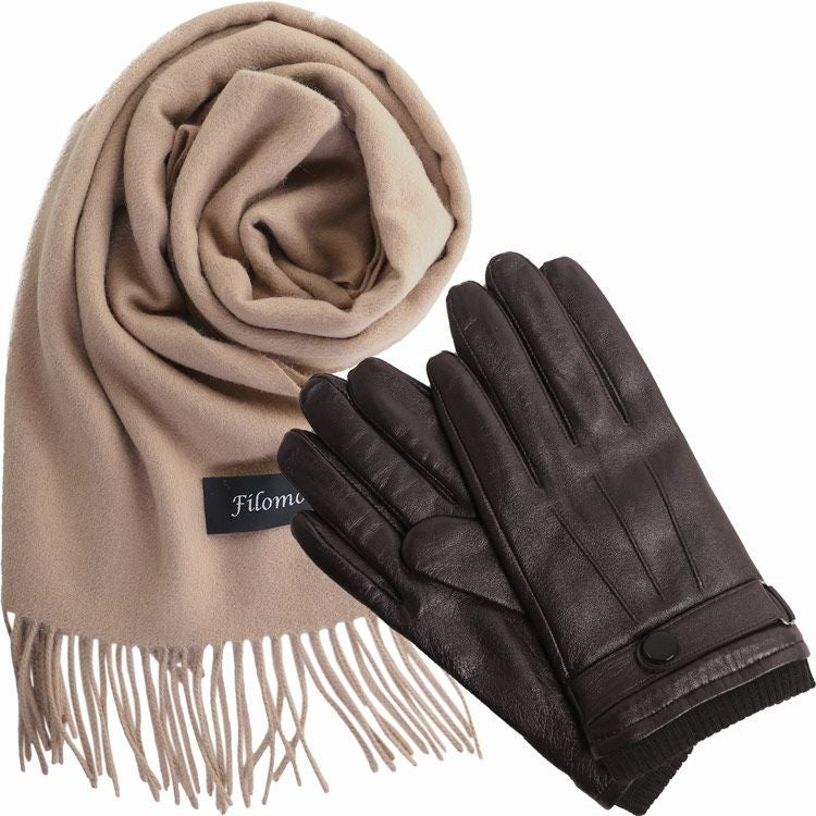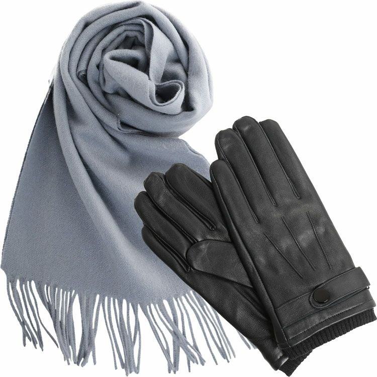 カシミヤ混マフラー&手袋 セット メンズ 男性向け 【名入れ 別途購入で可能】スマホ対応 レザーグローブ 本革 革 グローブ カシミヤブレンド マフラー カシミヤマフラー(gset-02000323mr)