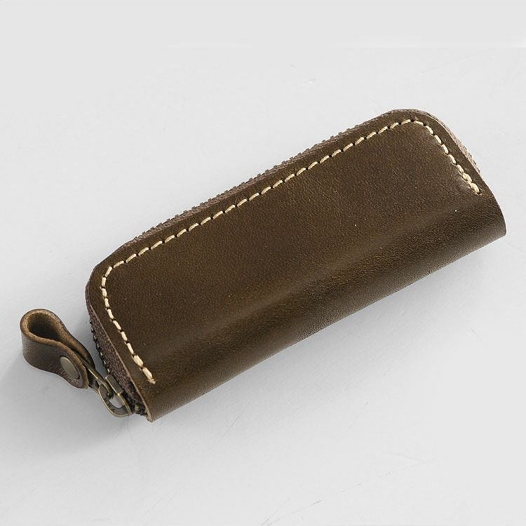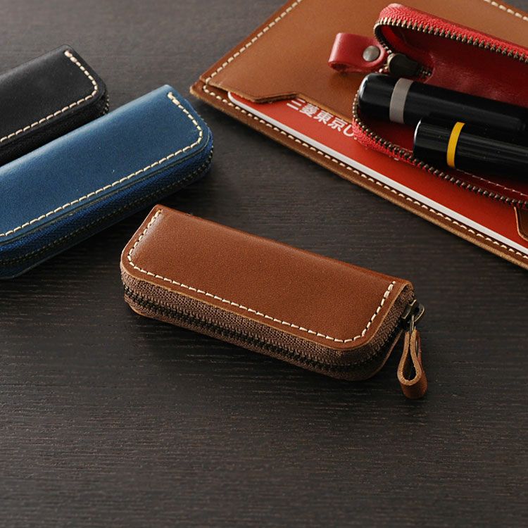 シンプルでコンパクトな 栃木レザーの印鑑ケースです。 「コ」の字型ファスナーが開く ラウンドファスナー式で、 大切な印鑑を きちんと収納しておくことができます。 上品な栃木レザーの風合いが魅力で 贈り物などギフトとしても 選ばれているアイテムです。 栃木レザーは、北米の広大な牧場で 大きく元気に育った牛の原皮を使用しています。 栃木のタンナーの元で、大きく分けても 20にも及ぶ伝統的な技法工程を経ることにより、 日本で最高峰と呼ばれる 「ヌメ革」に仕上がっています。 しっとりと手に吸い付き馴染むような ソフトな肌触りと、本革ならではの 味のある表情・光沢感が魅力の日本製レザーです。 内装は仕切りのないシンプルな造りで、 シャチハタの印鑑が2つ 収納可能な大きさです。 印鑑ケース以外にも様々な使い方が出来る革小物です。 USBメモリやカードリーダー、SDカードなど PC関連のアクセサリの収納などにも使えます。 リップクリームやお薬など、様々な物を携帯できます。 重量:約20g
