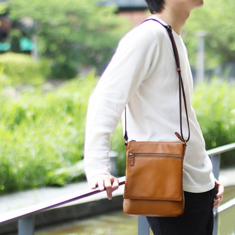 Jamale 日本製 ジャマレ 牛革 防水加工 ショルダーバッグ メンズ キャメル ブラウン