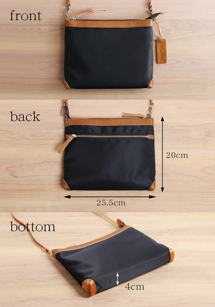 HALEINE 日本製 ナイロン 栃木レザー たつのレザー サコッシュ メンズ 横型 ショルダー バッグ ボディバッグ 牛革 本革 ギフト mensbag