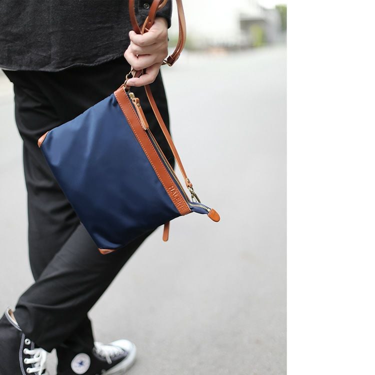 商品名:HALEINE 日本製 ナイロン 栃木レザー たつのレザー 横型 サコッシュ メンズ