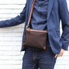 3. HALEINE 日本製 ナイロン ヌメ革 横型 サコッシュ メンズ 【名入れ 別途購入で可能】 4FB