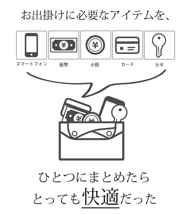 いちいちポケットやバッグから財布やスマホを取り出す必要がなく、 ショルダーウォレットのように肩から下げたままお金やスマホをパッ!と取り出せます。