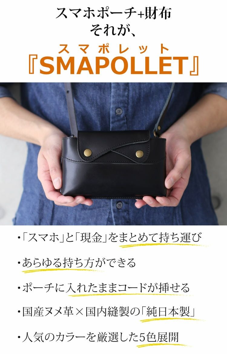 商品名:HALEINE スマホポーチ ネックウォレット 日本製 ヌメ革 SMAPOLLET スマポレット