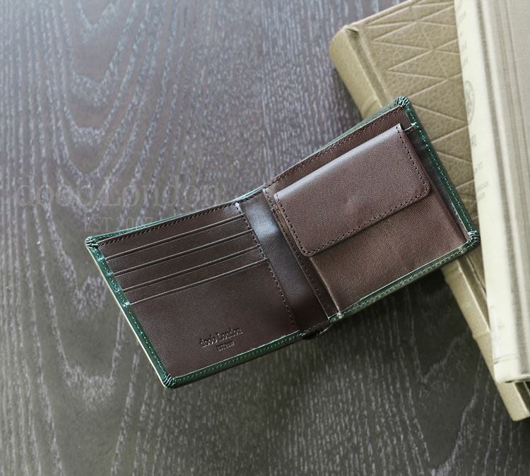 コードバン 二つ折り財布 メンズ 本革 doob London 一枚革 折財布 グリーン/ブラウン/ブラック ブランド 財布 折り財布 紳士 馬革 チョコ 以外 父 普段使い 父 プレゼント