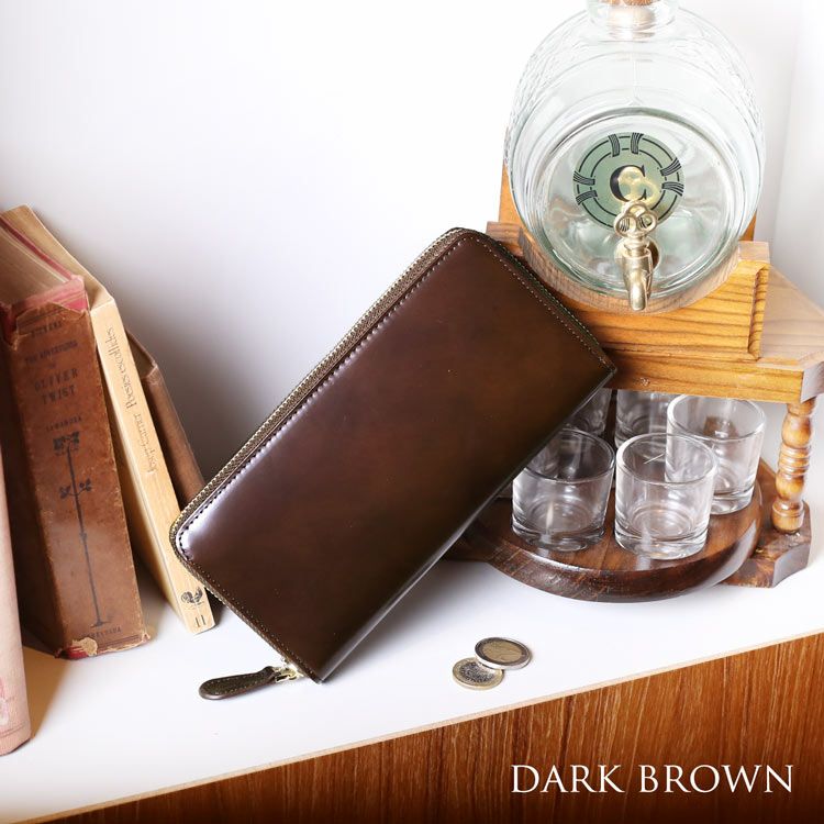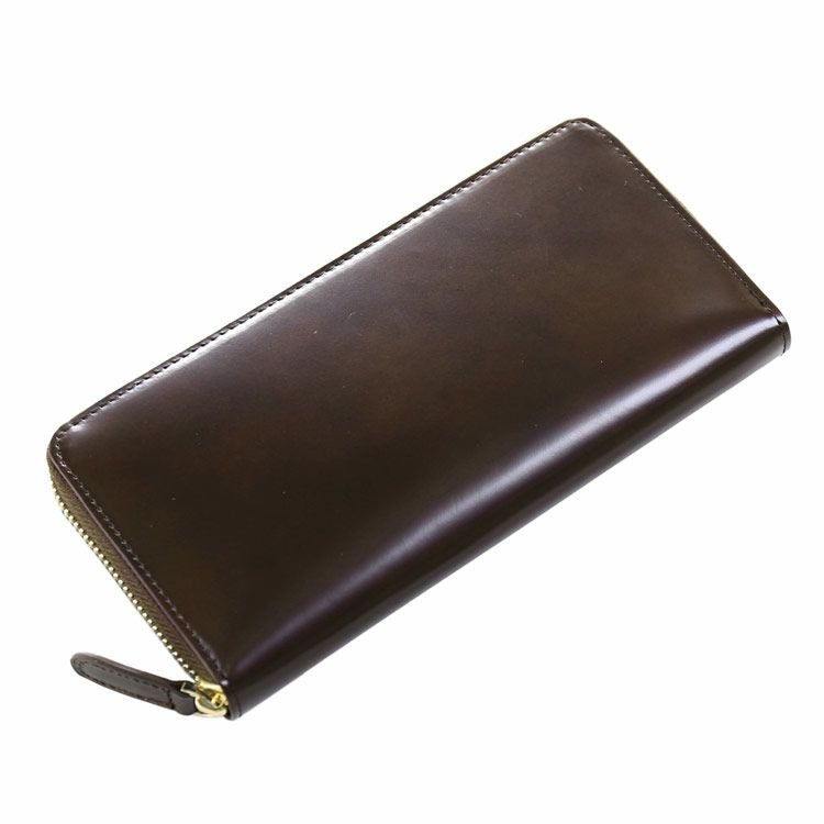 大人の品格を上げるコードバンのラウンドファスナー長財布。