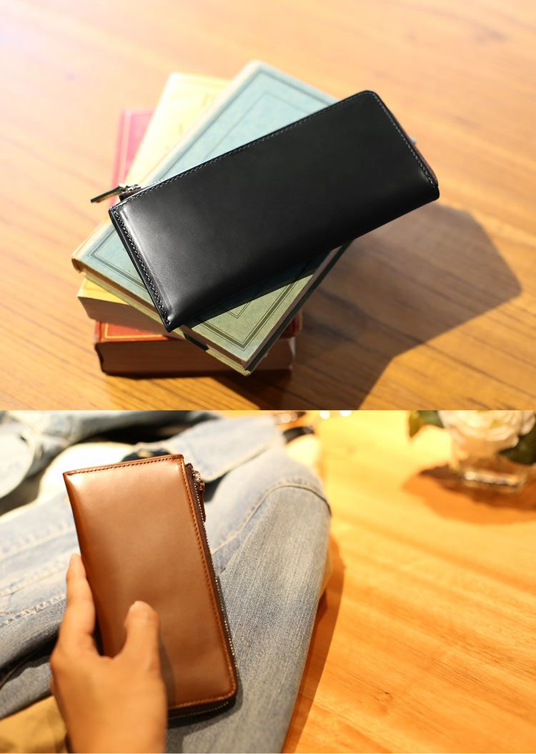 大人の品格を上げるコードバンのL字ファスナー長財布。