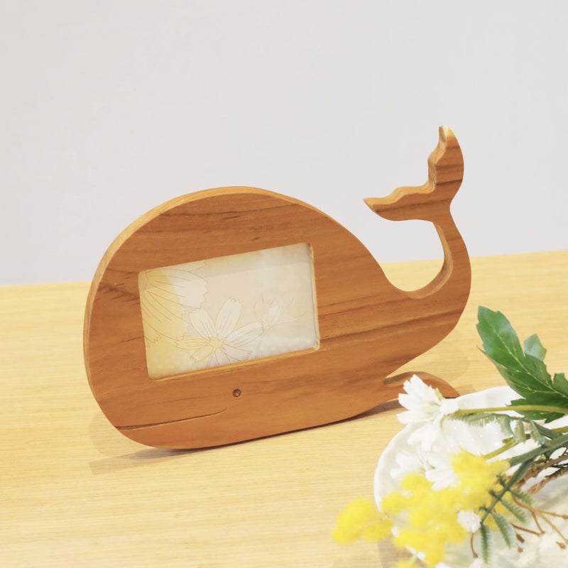 フォトフレーム 出産祝い 天然木 写真立て ミニ mieno home プレゼント ベビーキッズ 卒園 クマ くじら アニマル 動物 子供 記念 木製 無垢 ハーフ 赤ちゃん 横置き 命名 (09000575r)