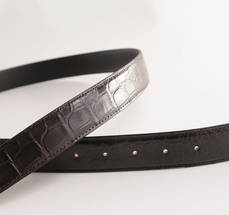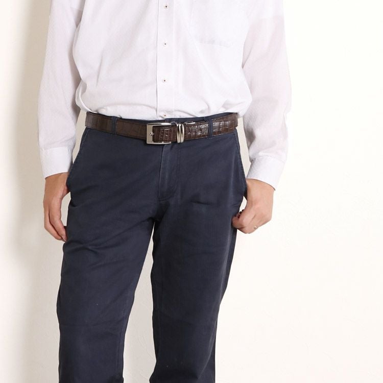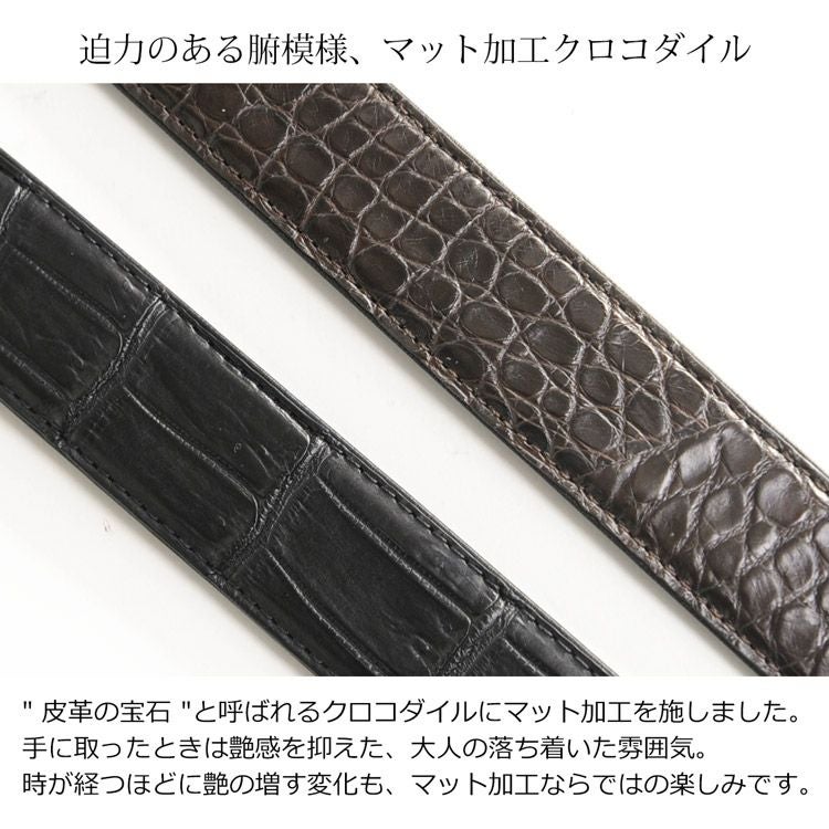 | 商品名:クロコダイル ベルト マット加工 35mm メンズ 牛ウラ ピンタイプ |