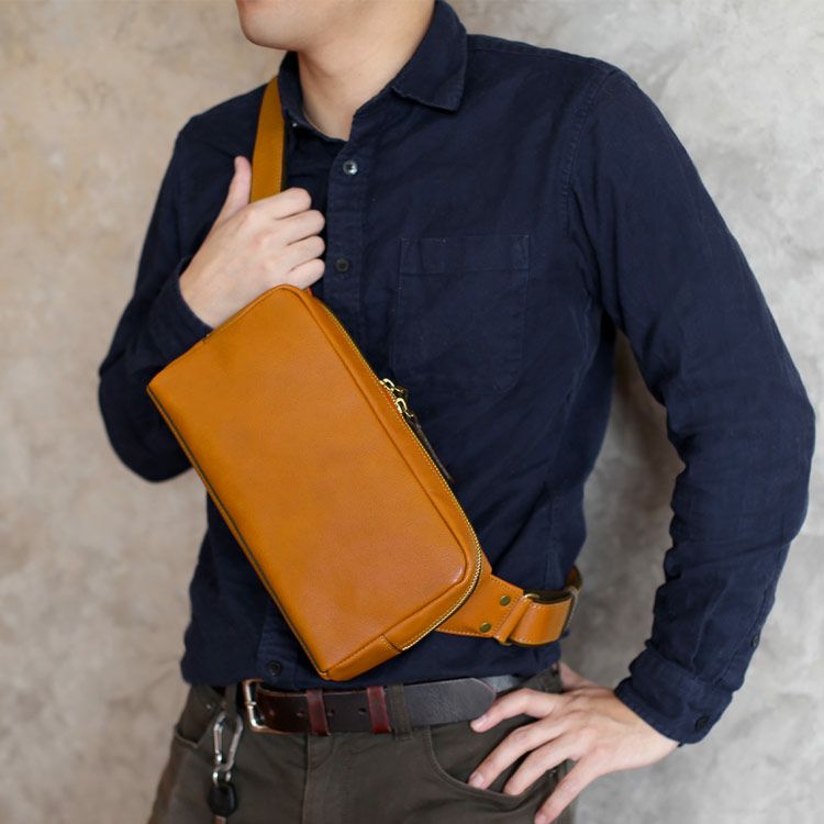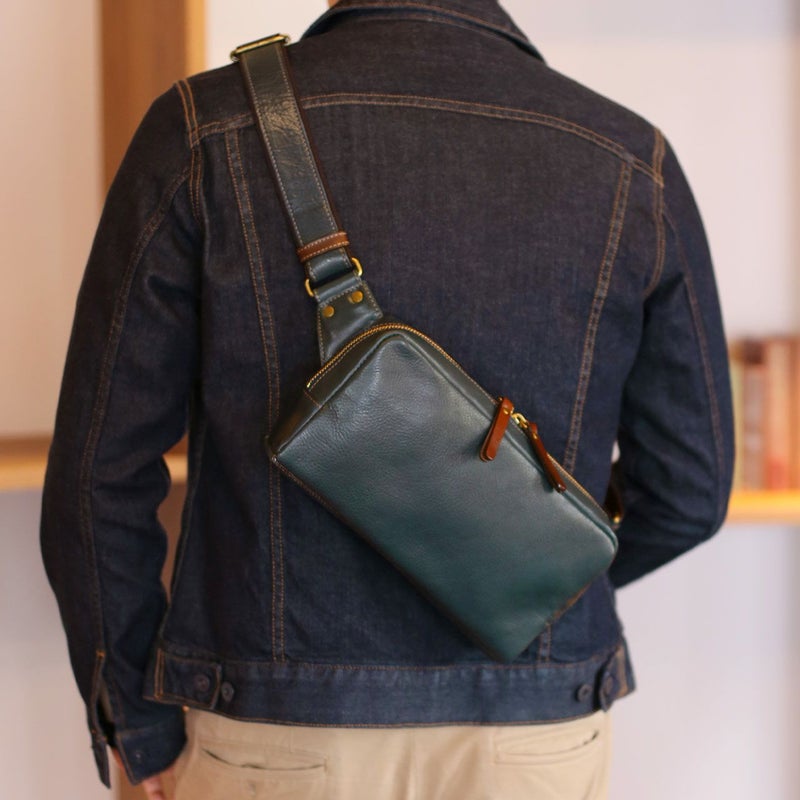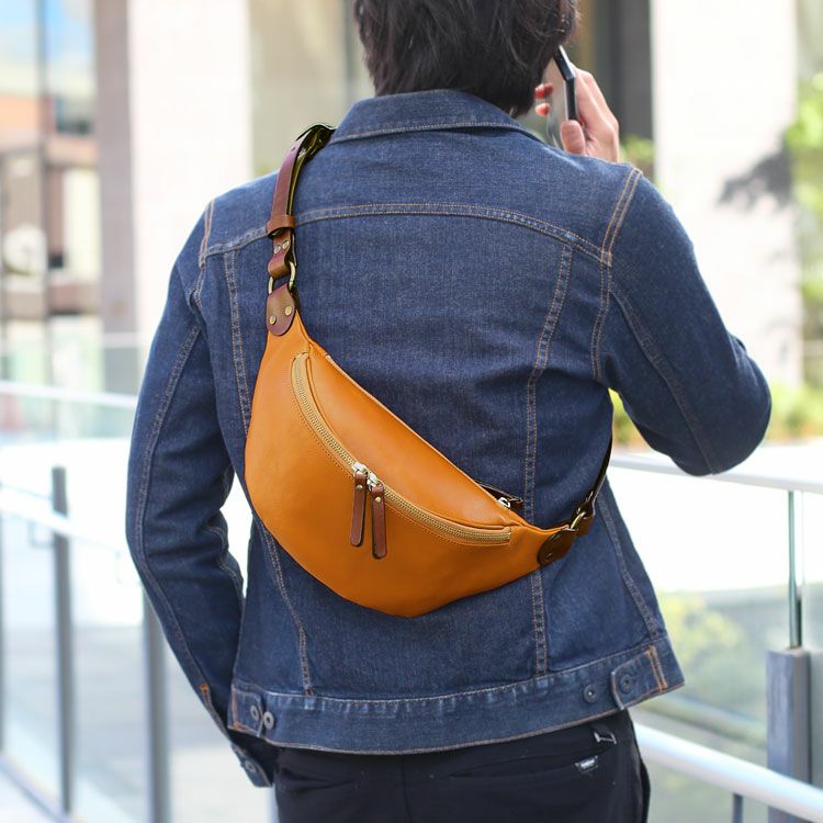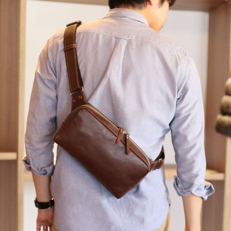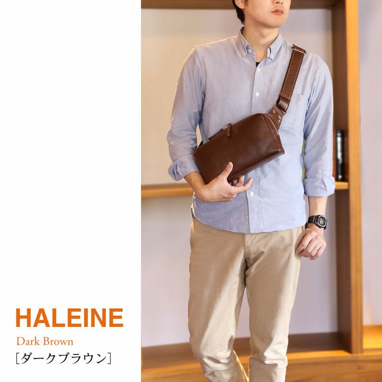 ボディバッグ メンズ 横型 本革 牛革 日本製 アレンヌ 男性 ファニーパック プレゼント HALEINE ブランド 父 クリスマス ギフト 斜めがけバッグ 斜めがけ 四角 シンプル カジュアル 肩掛け (07000362-mens-1r)