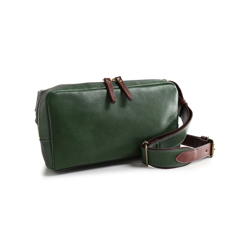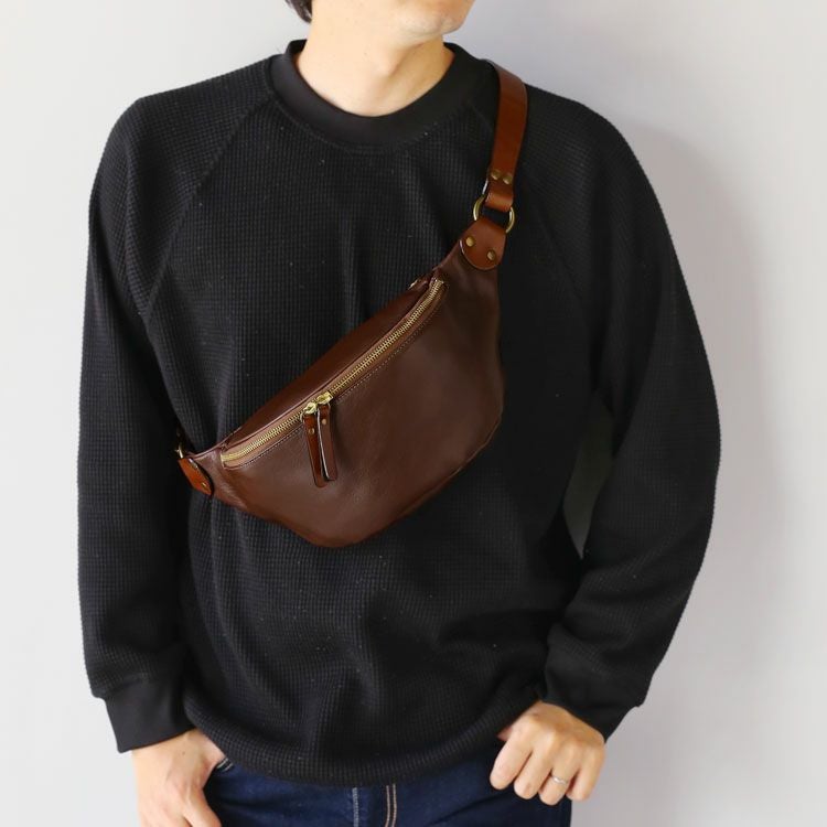 横型ボディバッグにサイドまで開閉し、掛けたまま取り出しやすいデザイン。