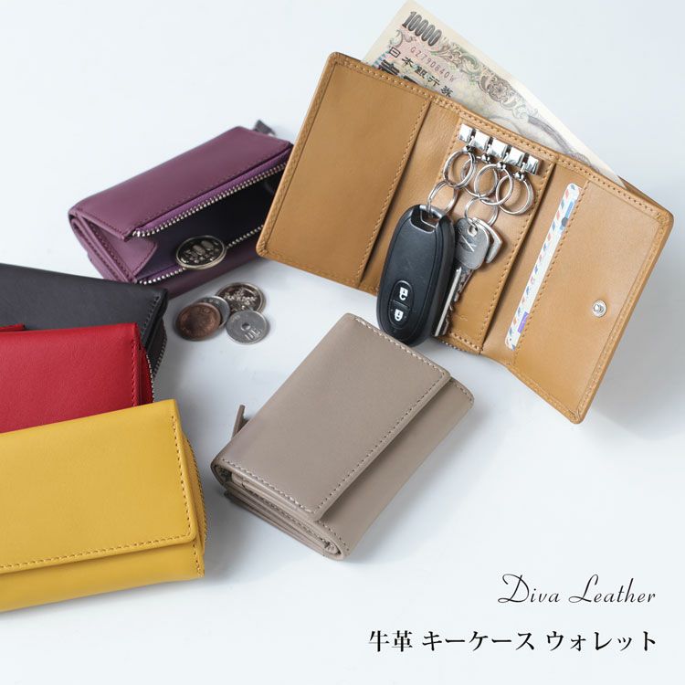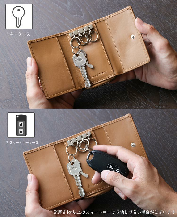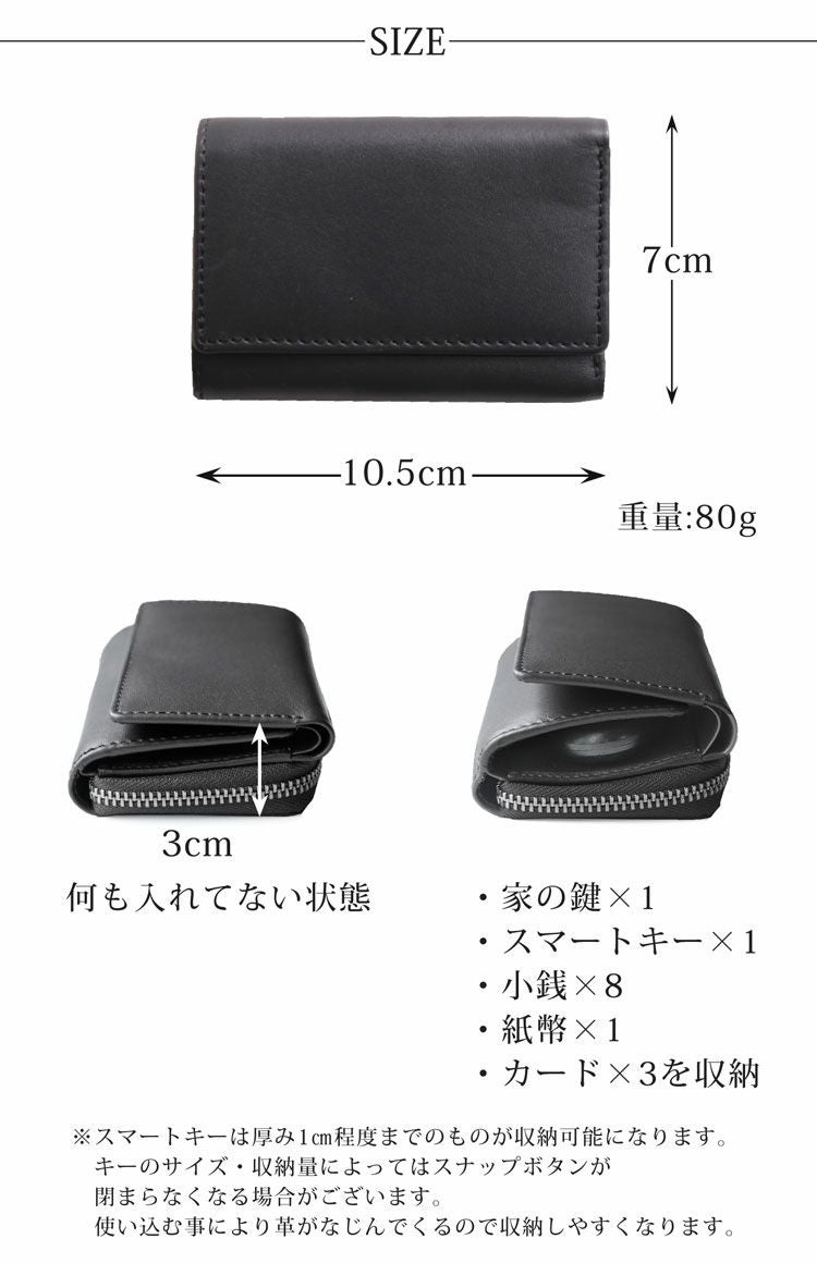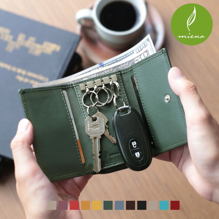 牛革 キーケース ウォレット 小銭入れ mieno 【名入れ 別途購入で可能】 (07000395-mens-1r) 5F【ネコポスで送料無料】