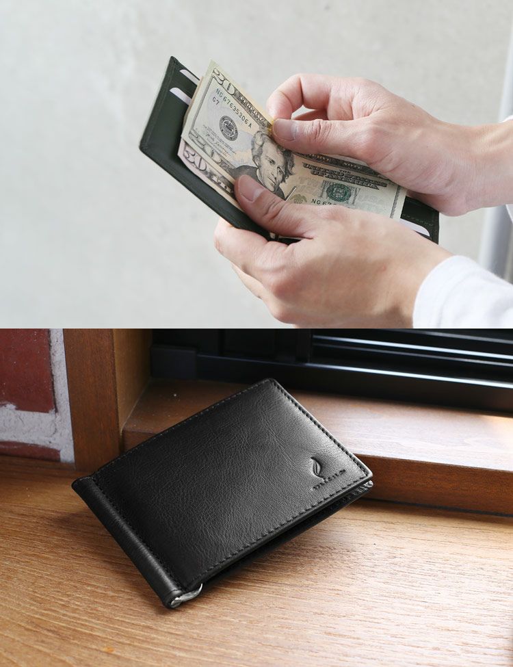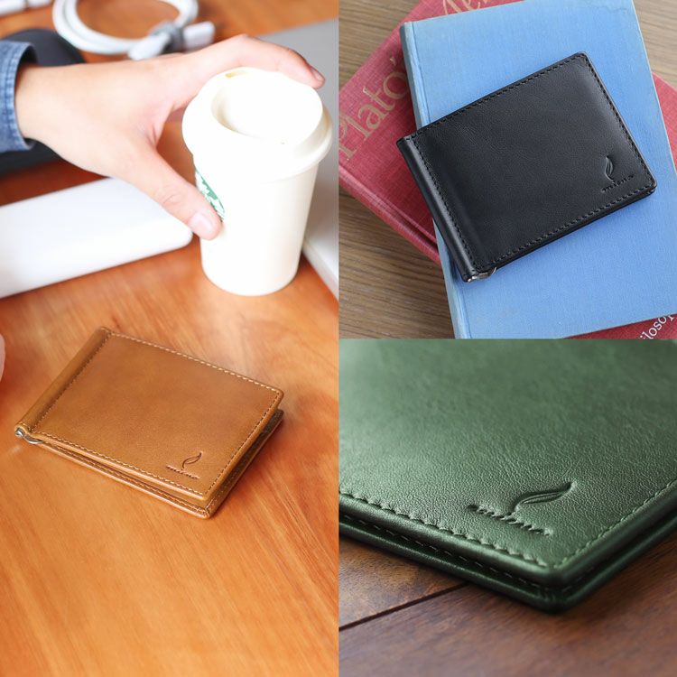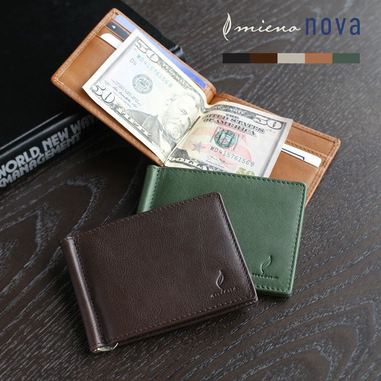マネークリップ メンズ 革 ブランド mieno 札ばさみ 牛革 レザー スリム コンパクト サイフ 財布 薄型 薄い 札入れ 二つ折り ミニマリスト カード入れ キャッシュレス シンプル 父 ギフト プレゼント