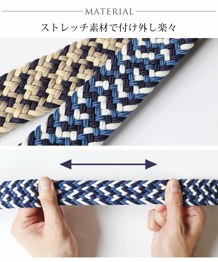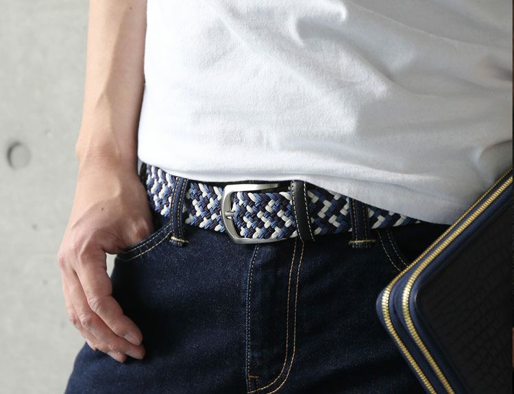 ストレッチの効いた合成ゴムを使用。 メッシュ部分が伸縮することで、身体の動きに合わせて柔軟に連動します。 着席時でも、直立時でもベルトの位置が変わりづらくに、腰への圧迫も軽減。 快適にベルトの着脱ができます。 バックル:金具のピンタイプ メッシュデザインの為体型や使い方に合わせて好みの位置で留める事ができます。 職人が丁寧に仕立てた日本製ベルト。 存在感のあるメッシュデザインのベルト。 カジュアルな装いはもちろん フォーマルなスーツに合わせて使うこともできます。